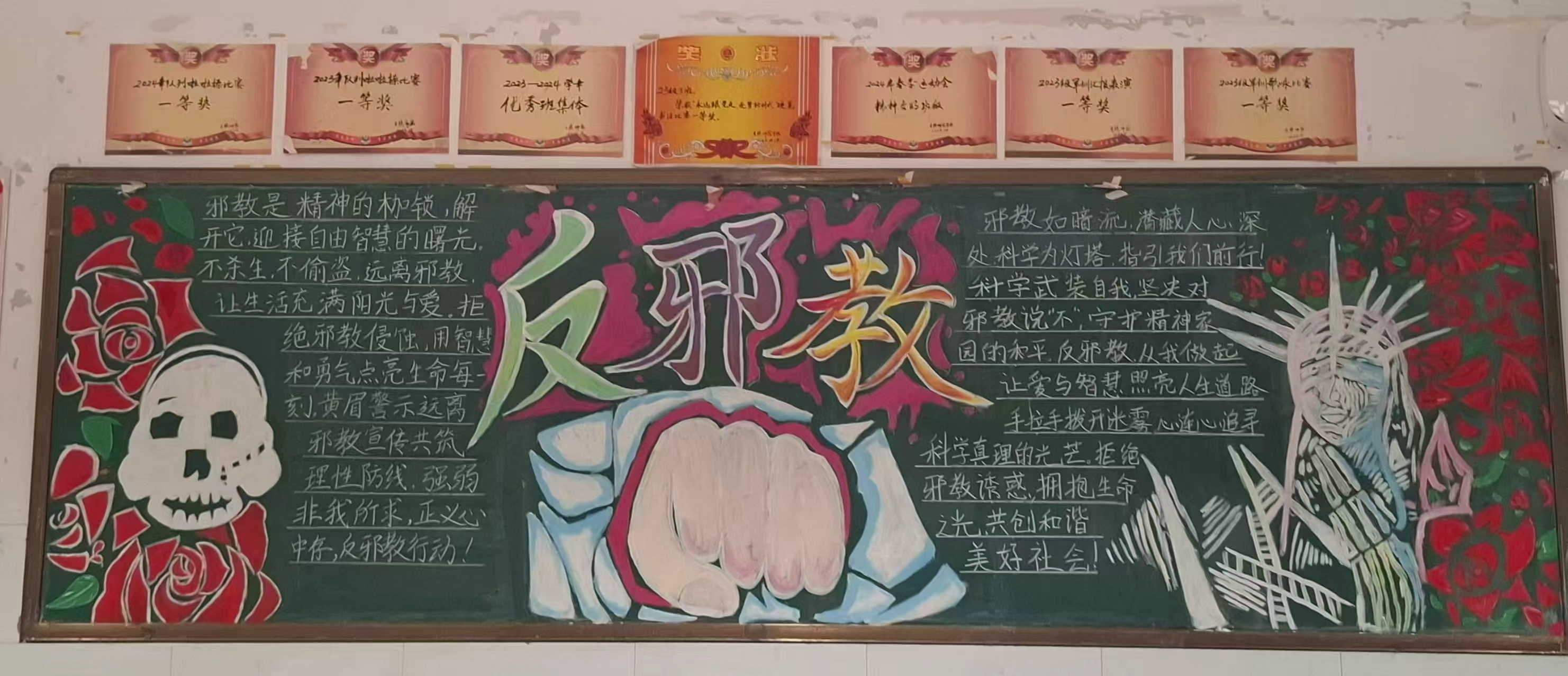 各班级充分发挥学生的创造力与动手能力,精心制作反邪教黑板报与手抄报,成为班级内部反邪教宣传的“小窗口”。让学生进一步加深对反邪教知识的理解,同时也为校园增添了一抹独特的文化色彩,展现出学生积极参与反邪教斗争的决心与热情。