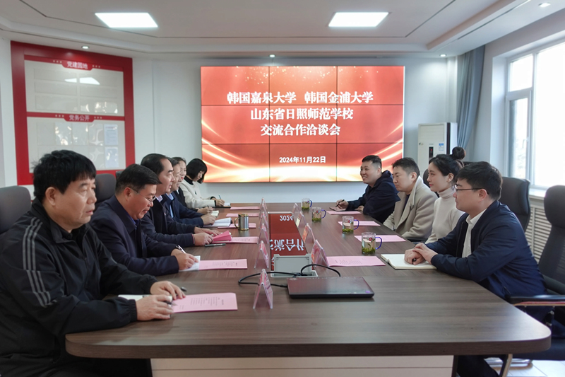 11月22日,我校与韩国嘉泉大学、金浦大学开展教育合作交流会。此次会议旨在加强中外教育交流合作。韩国嘉泉大学经营研究生院副院长柳领相、韩国金浦大学教育系教授崔敏智、曲阜师范大学翻译学院韩语系主任周磊与日照市商业学校副校长张功庆一行四人到我校开展国际教育合作交流活动。学校党委书记刘伟,党委副书记、校长徐宣清,党委委员、副校长王义朋和相关处室负责人热情接待到访人员。