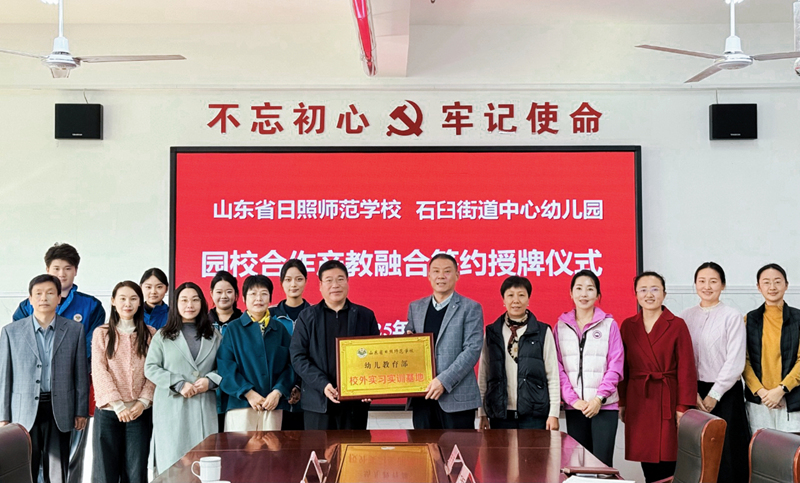 为深入贯彻落实职业教育深化产教融合的决策部署,推动学校幼儿保育专业、婴幼儿托育专业人才培养与行业需求精准对接,11月12日,我校党委委员、副校长王义朋带领教学处和幼儿教育部师生,赴日照市东港区石臼街道中心幼儿园开展职业技能大赛实践性教学,举行园校合作产教融合签约暨实习实训基地授牌仪式。石臼街道中心幼儿园园长、党支部书记王世华带领园所管理团队及骨干教师一起深入交流,双方相关处室负责人共同参加活动。